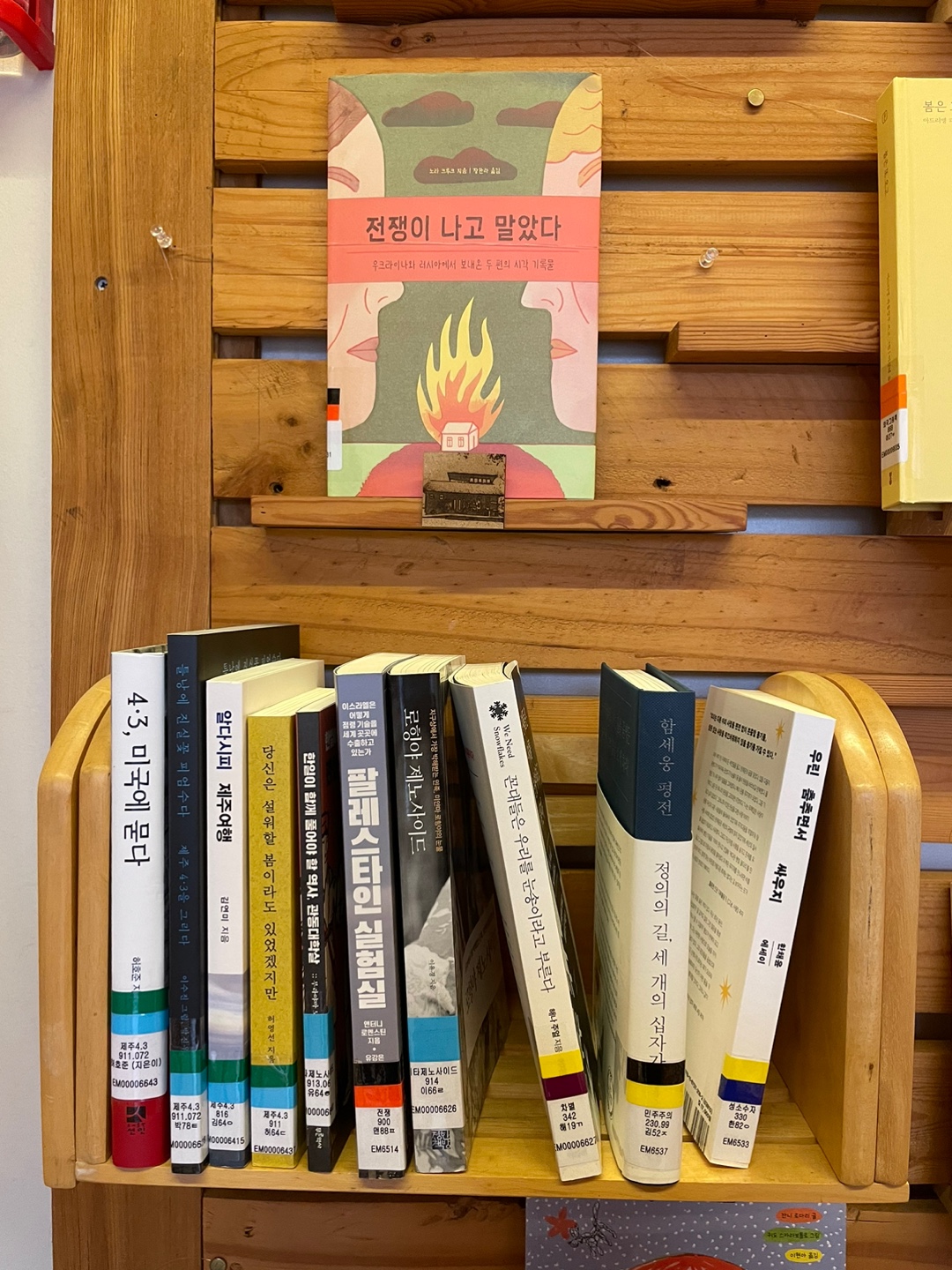 평화를 품은 도서관, 새로 들어온 책들이 자리를 찾아 옹기종기 모였습니다. 기억해야 할 역사부터 현시대의 고찰까지 그림책으로 시로 소설로 에세이로 우리에게 다가옵니다. 2024년도, 살아온 시간의 3배가 남았어요:) 지나간 것은 지나가게 하고 새길 것은 새기고 싶은 3월 말. 서로 기대어 평화를 품기로 해요~