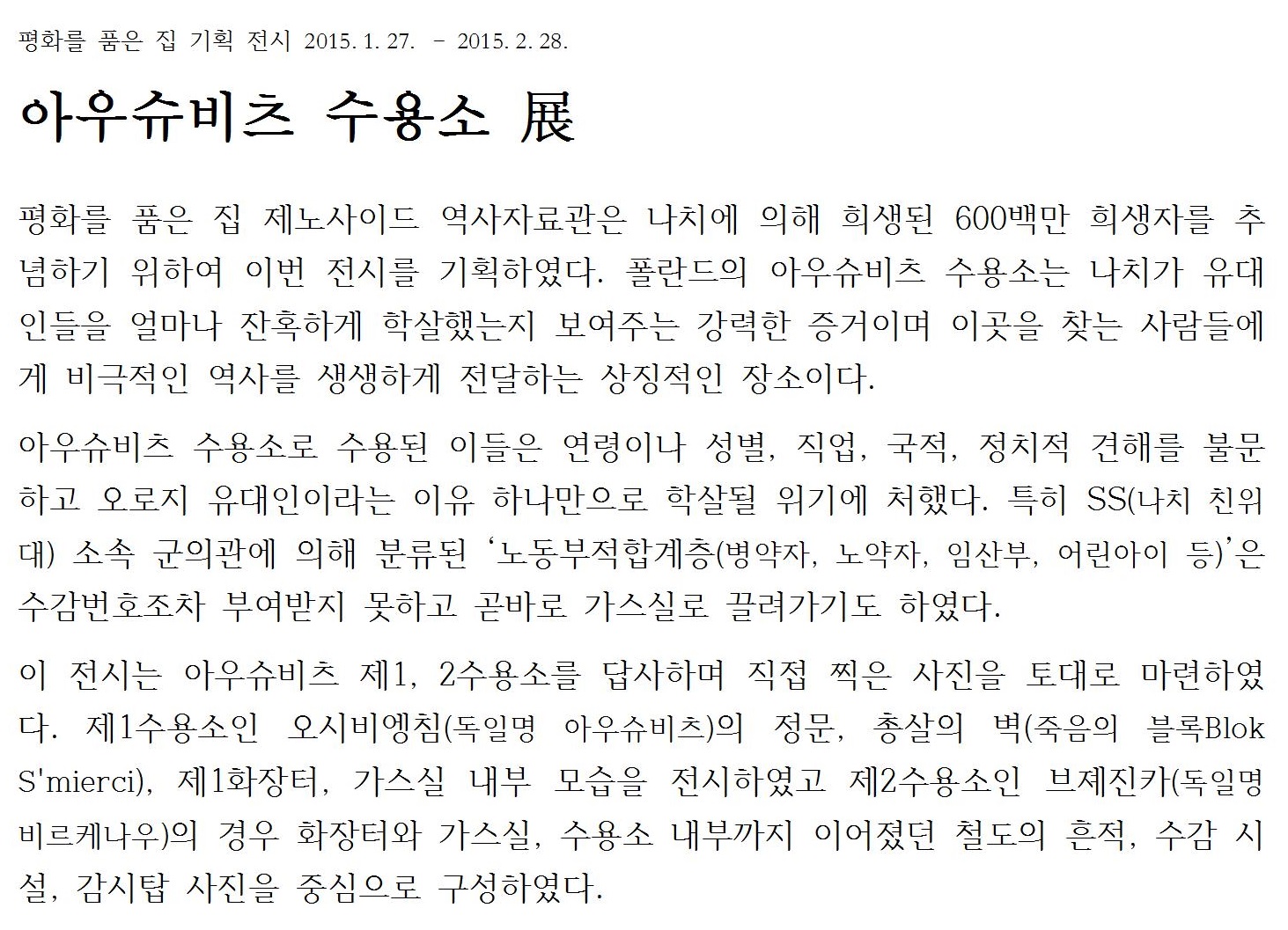 | [홀로코스트] 아우슈비츠 수용소 展 | |||