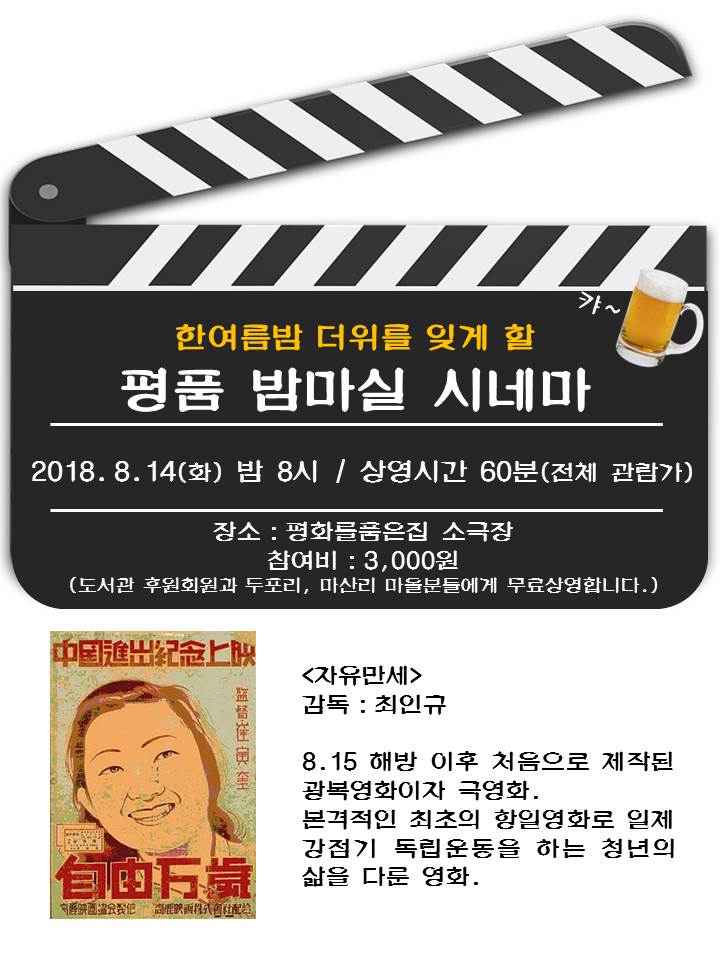 | 평화도서관 8월의 밤마실 시네마 《자유만세》 (8/14) | |||