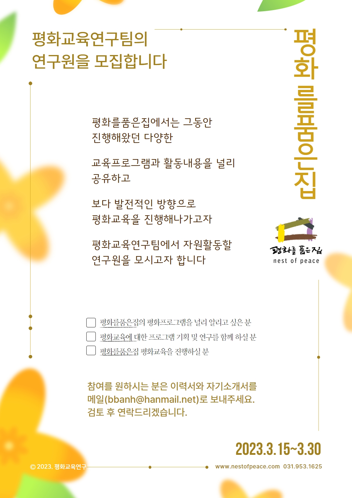 평화를품은집에서 평화교육연구원을 모집합니다.