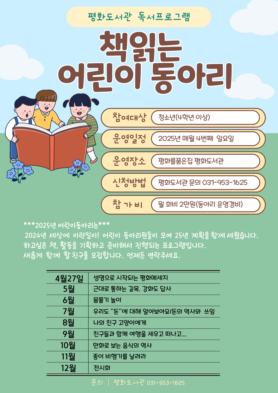 2025년 책읽는 어린이 동아리 모집합니다.