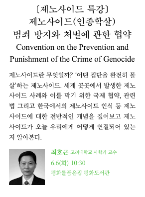 제노사이드 협약, 한국전쟁기 민간인 학살 -'인문의 숲을 거닐다' 평품집 강연에의 초대