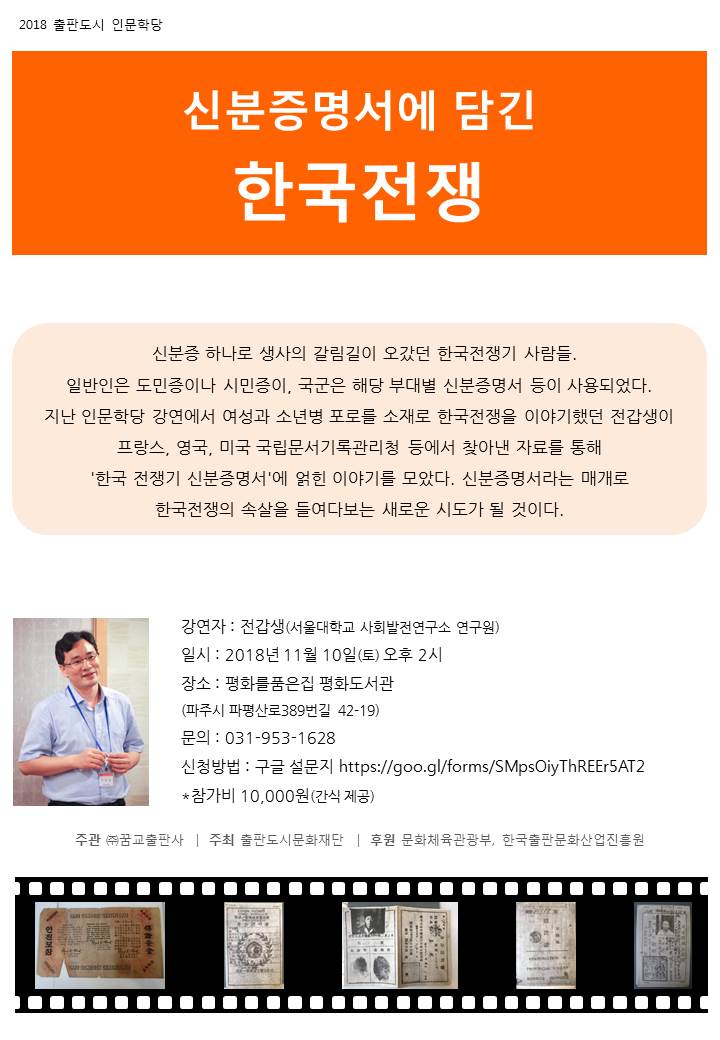 | 올해의 마지막 인문학당 강연에 초대합니다! "신분증명서에 담긴 한국전쟁 이야기"(11/10) | |||