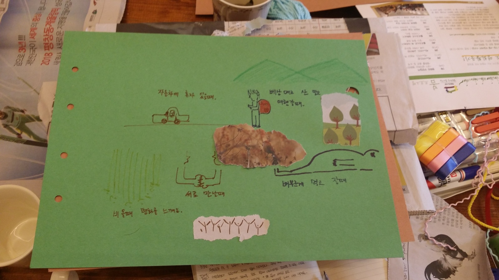 본격적인 평화 수업이 진행되기 이전에 '자신이 생각하는 평화'에 대해 고민해 보는 시간을 가졌습니다.