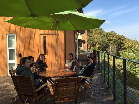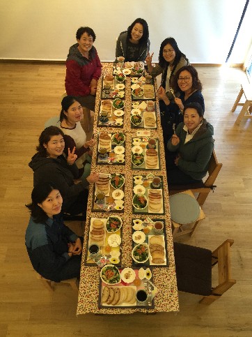 저 뒤로 굳게 닫힌 문 보이시나요. 선생님들이 밖에서 즐기시는 동안 안에서는 빵정식 준비가 한창입니다.
